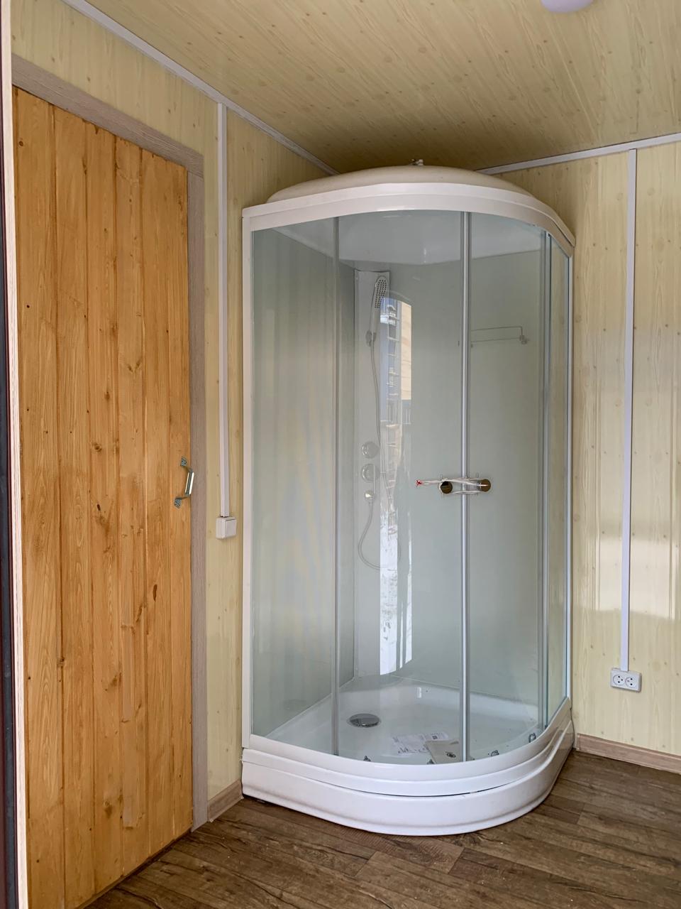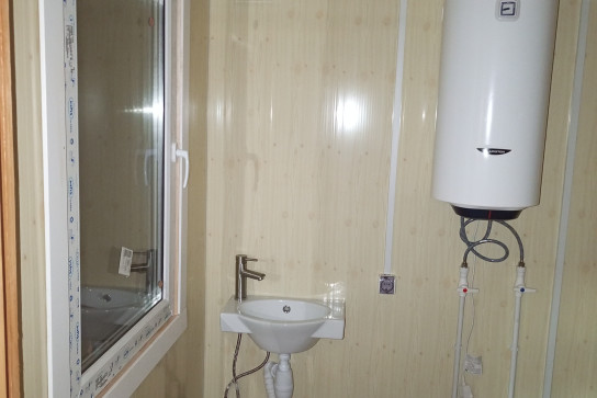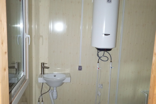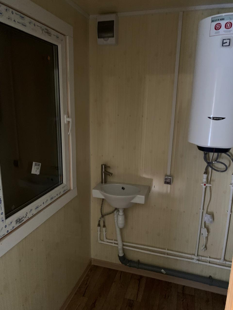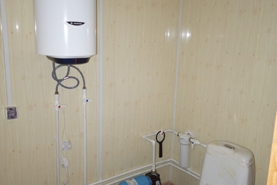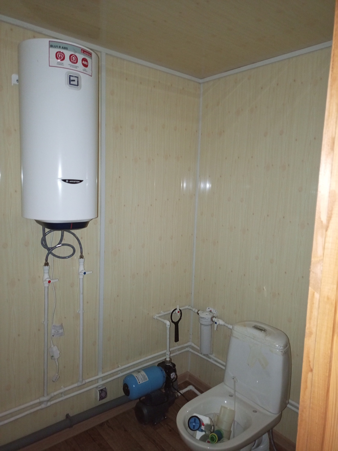 Блок-контейнер с душевой кабиной, эл/нагревателем, туалетом, раковиной и насосной станцией