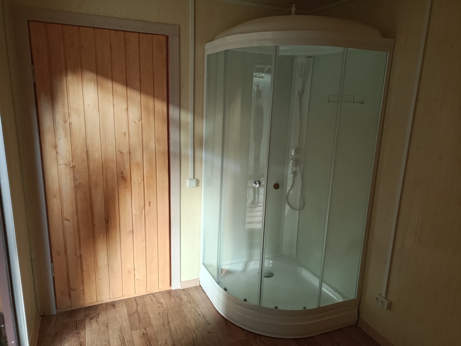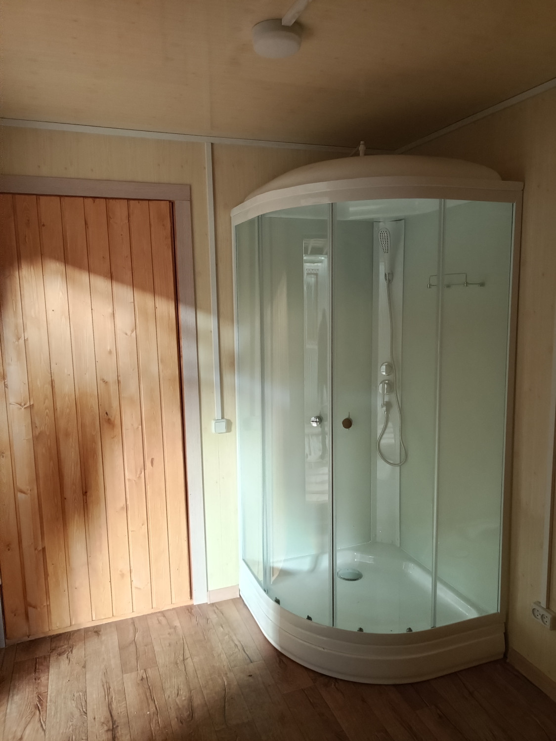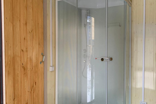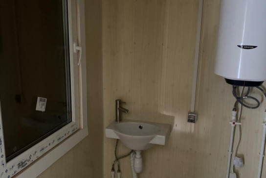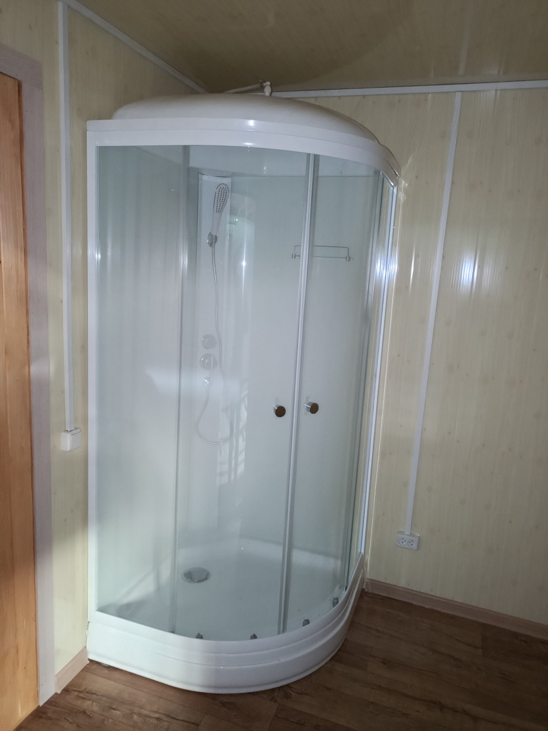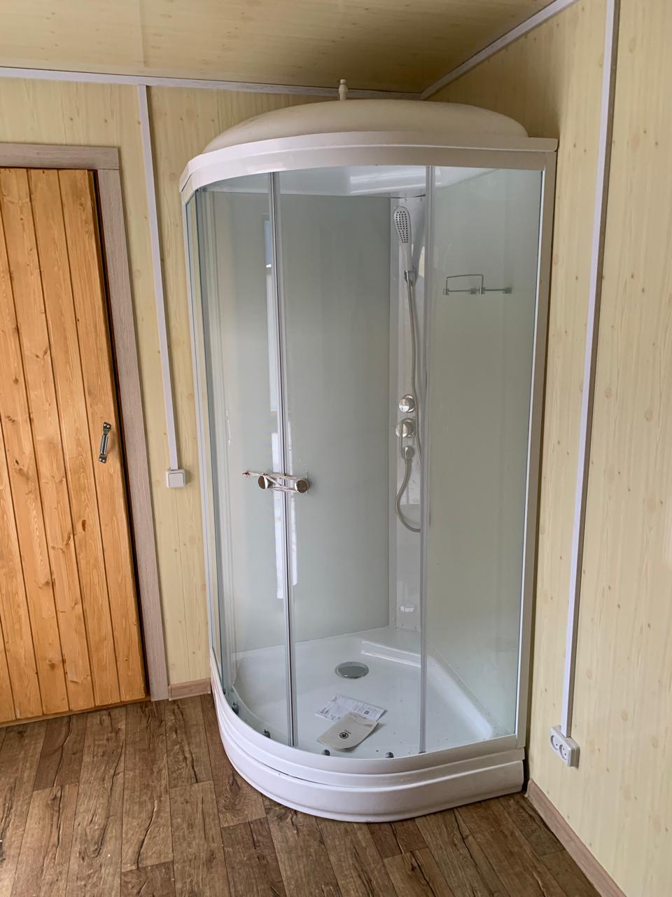 Блок-контейнер с душевой кабиной, эл/нагревателем, туалетом, раковиной и насосной станцией